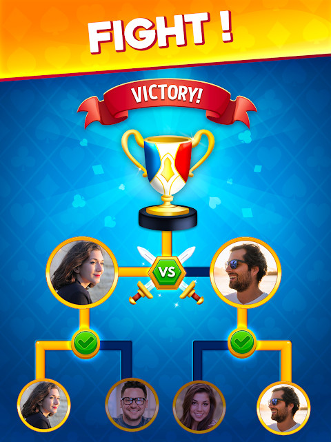 The Gourmet Palace: By winning Belote and Coinche games, collect ingredients to prepare delicious recipes. Each dish prepared brings you special prizes. Unlock all the restaurants and win more and more prizes!