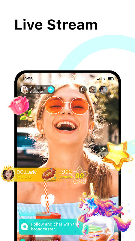 Get followers, gain fans, receive gifts, make friends and become an idol to others.