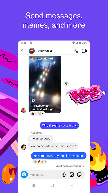 - Keep up with friends on the fly with Stories and Notes that disappear after 24 hours.