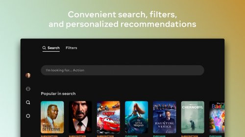 – Convenient search. Use filters by genre, rating, or country to find the content you need. Or try searching by title or actor.