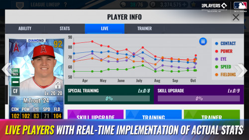 Compete against top players to reach the top in MLB 9 Innings 24.