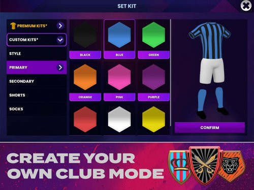 - Try forging your own legend by creating your dream football club and grow a team of super star soccer players.