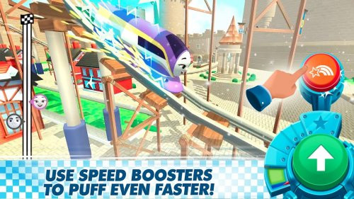Join Thomas and his friends on exciting racing adventures! Race as your favorite engine on incredible tracks filled with twisty rollercoasters, splashy waterslides and epic jumps! Play against rival engines or challenge a friend in the 2-player mode! Use speed boosters to help you race your fastest and collect golden cogwheels to upgrade your engines. Full steam ahead!