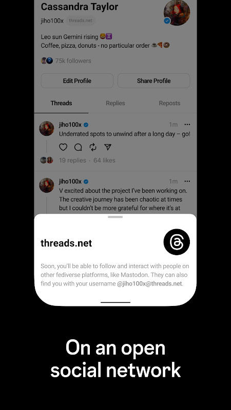 Threads is where communities come together to discuss everything from the topics you care about today to what’ll be trending tomorrow. Whatever it is you’re interested in, you can follow and connect directly with your favorite creators and others who love the same things — or build a loyal following of your own to share your ideas, opinions and creativity with the world.