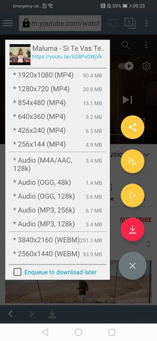 The options in TubeMate are almost endless. First of all, this amazing tool doesn’t only allow you to download videos from YouTube, but also many other video-streaming platforms, like DailyMotion, Vimeo, Vuclip and Metacafe. But that’s not all, the video quality options available in TubeMate includes 1920x1080, 1280x720, 640x360, 176x144, although it will depend on the qualities available in the streaming service you’re downloading your video from. In terms of formats, TubeMate includes the most popular ones like MP4, MP3 (yes, you can download audio as well), WEBM, OGG... you choose!