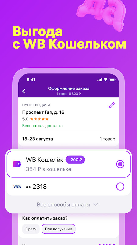 ♡ Pay in a convenient way: for example, WB Wallet with a discount or card. In most cases, prepayment is not necessary: the money will be debited only after you pick up the order.